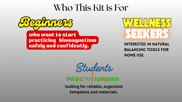 Everything a beginner needs to learn, practice, and organize biomagnetic pair therapy resources — trusted tools, clear charts, and safe guidance in one kit.